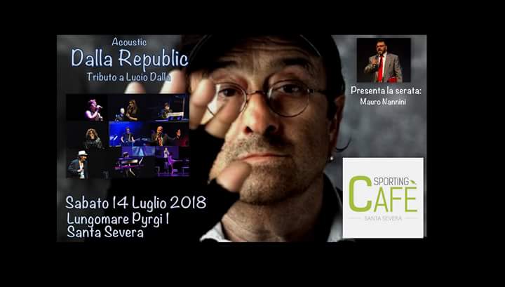 Lo Sporting Cafè sarà la location d’eccezione per il tributo degli artisti ternani a Lucio Dalla. Reduci dal “Sold out” del 22 maggio al Teatro Secci di Terni, presentano al pubblico un nuovo format, sempre totalmente live, ma in chiave acustica, dalle ore 21,30 (lungomare Pyrgi 1). Segui la pagina ufficiale