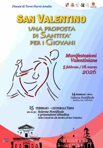 Entrano nel vivo, sabato 7 e domenica 8 febbraio, le manifestazioni valentiniane 2026 “San Valentino una proposta di santità per i giovani” per celebrare il primo vescovo di Terni, patrono della Città e della Diocesi, promosse dalla Diocesi di Terni-Narni-Amelia, dal Comitato tecnico scientifico diocesano di San Valentino, dalla parrocchia di San Valentino e dalle associazioni e movimenti della diocesi, e realizzate con il contributo della Fondazione Carit.