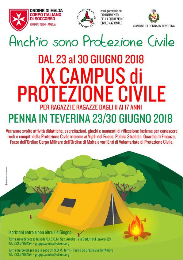 IX Campus Cisom si terrà a Penna in Teverina e potranno partecipare i ragazzi e le ragazze dagli 11 agli 17 anni che in una settimana potranno conoscere le varie componenti della protezione civile e sperimentare personalmente con attività pratiche le varie specialità.