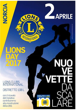 “Nuove vette da scalare”. E’ questo il titolo scelto dal Distretto Lions 108L per celebrare il Lions Day 2017 che quest’anno si terrà a Norcia domenica 2 aprile.