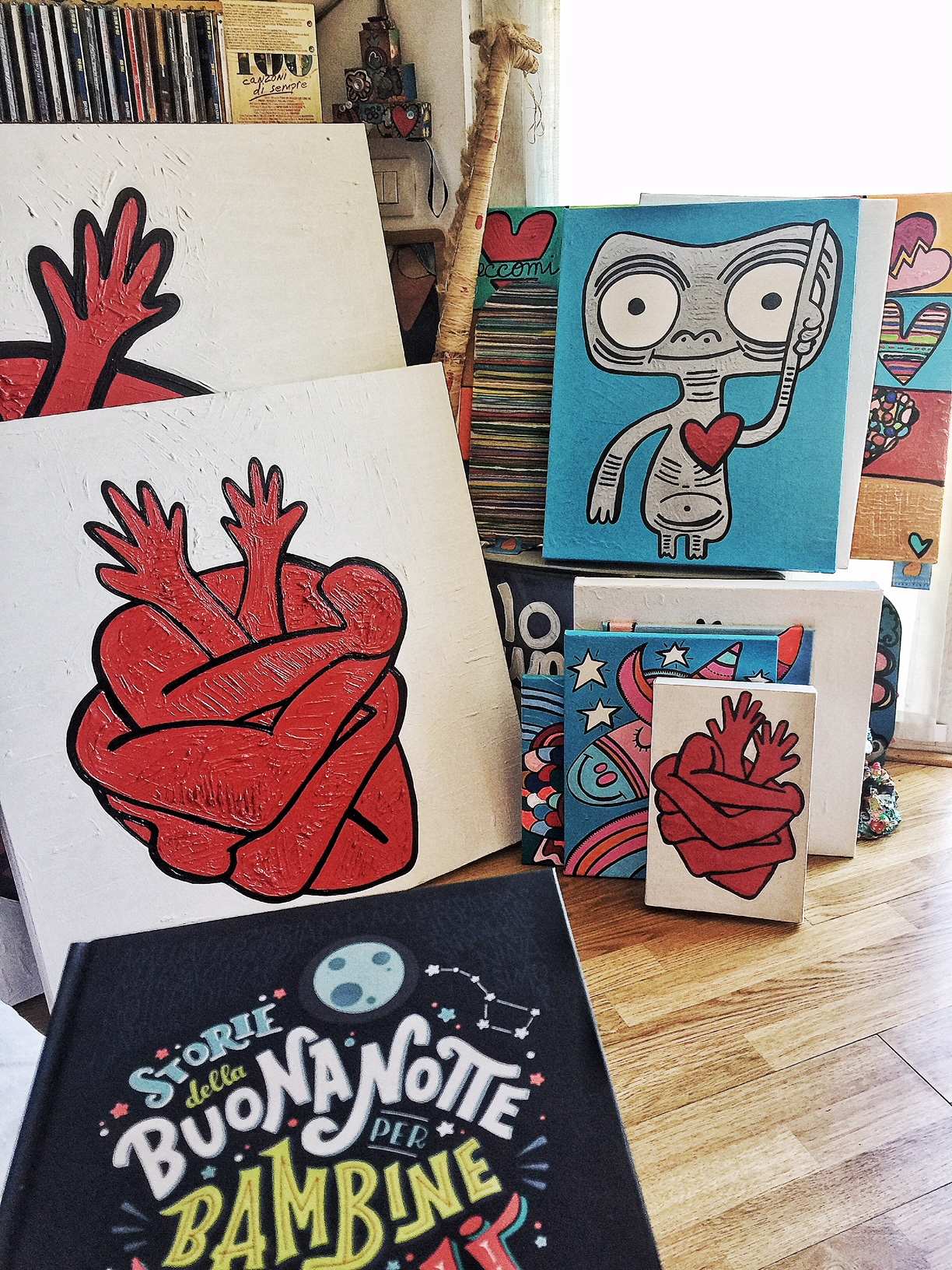 La personale di Lozoodisimona raccoglie gli ultimi lavori della Angeletti e si concentra su due tematiche, quella dei Cuori e quella dei SuperEroi, all’apparenza distanti ma accomunate dalla medesima volontà di dare una forma artistica alla grande lotta quotidiana che ognuno compie fra sogni e realtà. CLICCA QUI PER LA PAGINA FB DELL’ARTISTA