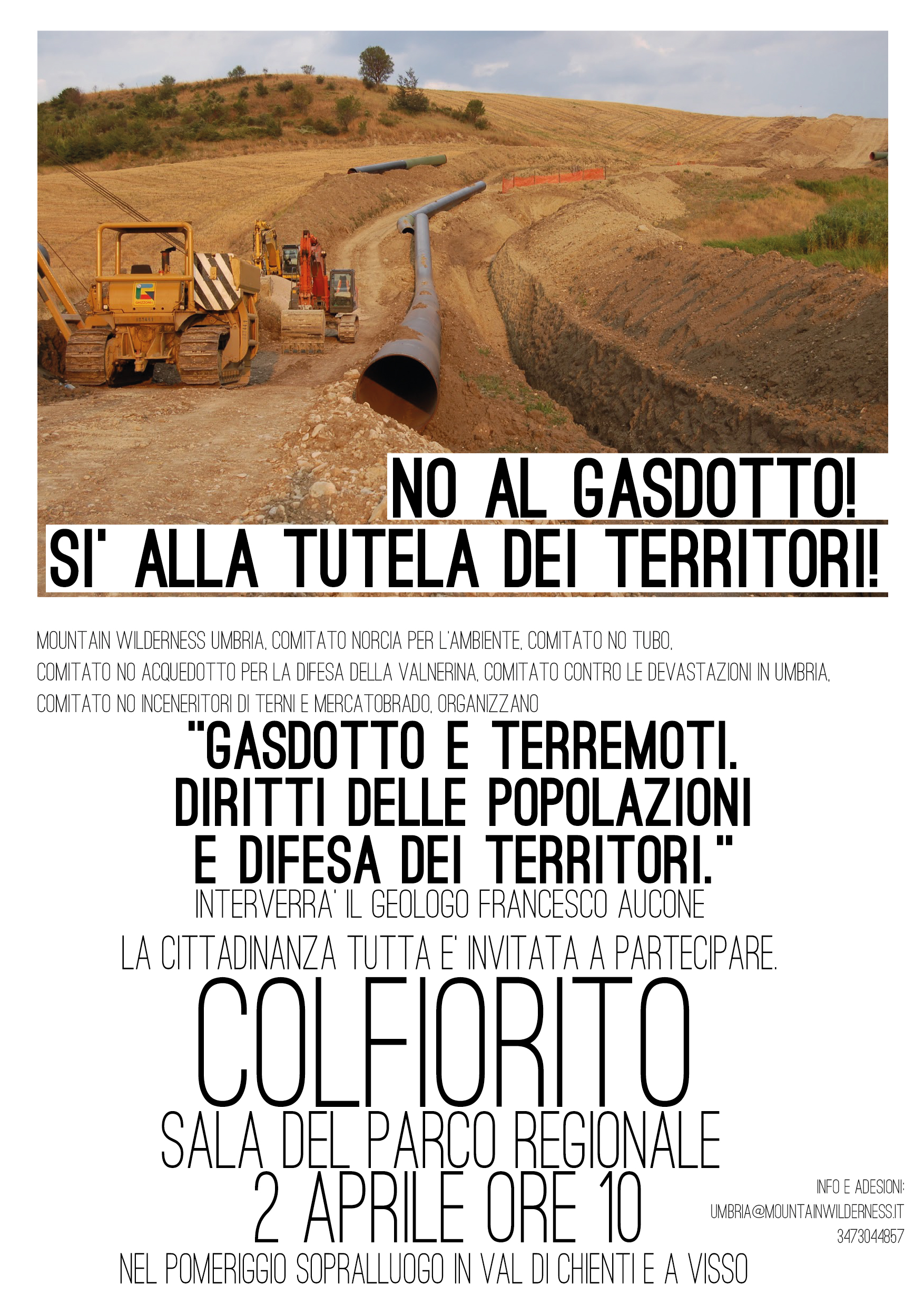 Organizzato da Mountain Wilderness Umbria, Comitato Norcia per l’Ambiente, Comitato No Tubo, Comitato contro le devastazioni territoriali in Umbria, Comitato No acquedotto per la difesa della Valnerina, Comitato No Inceneritori Terni, Mercato Brado,All’incontro sarà presente il geologo Francesco Aucone.