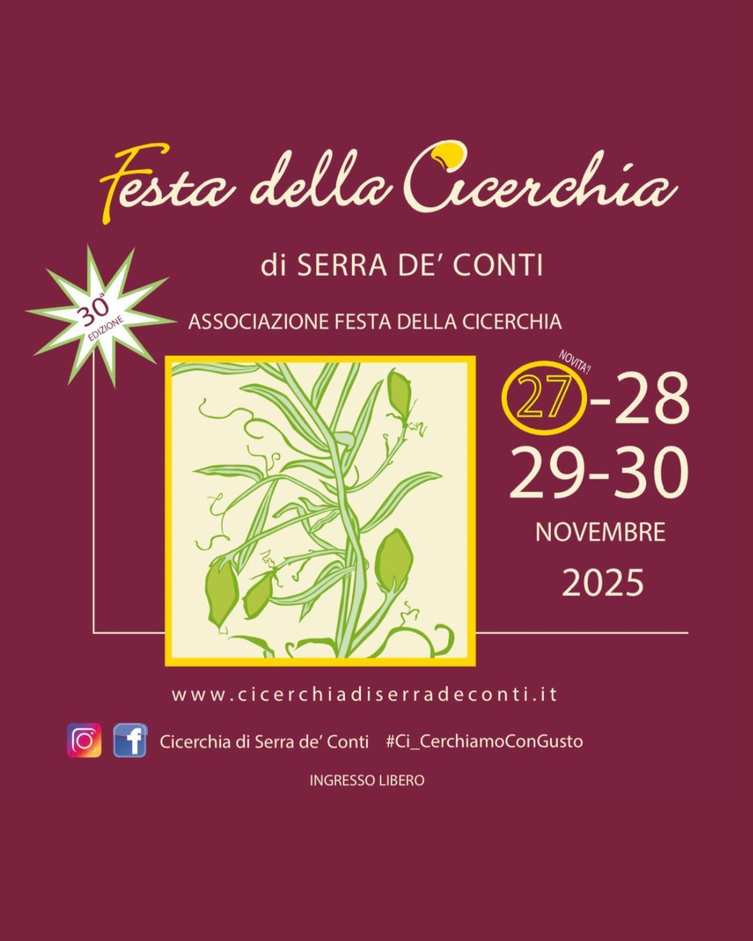 Serra de’ Conti (AN), la 30ª Festa della Cicerchia – 27/30 novembre Quando l’autunno profuma di legumi e tradizione, a Serra de’ Conti è tempo di Festa della Cicerchia.