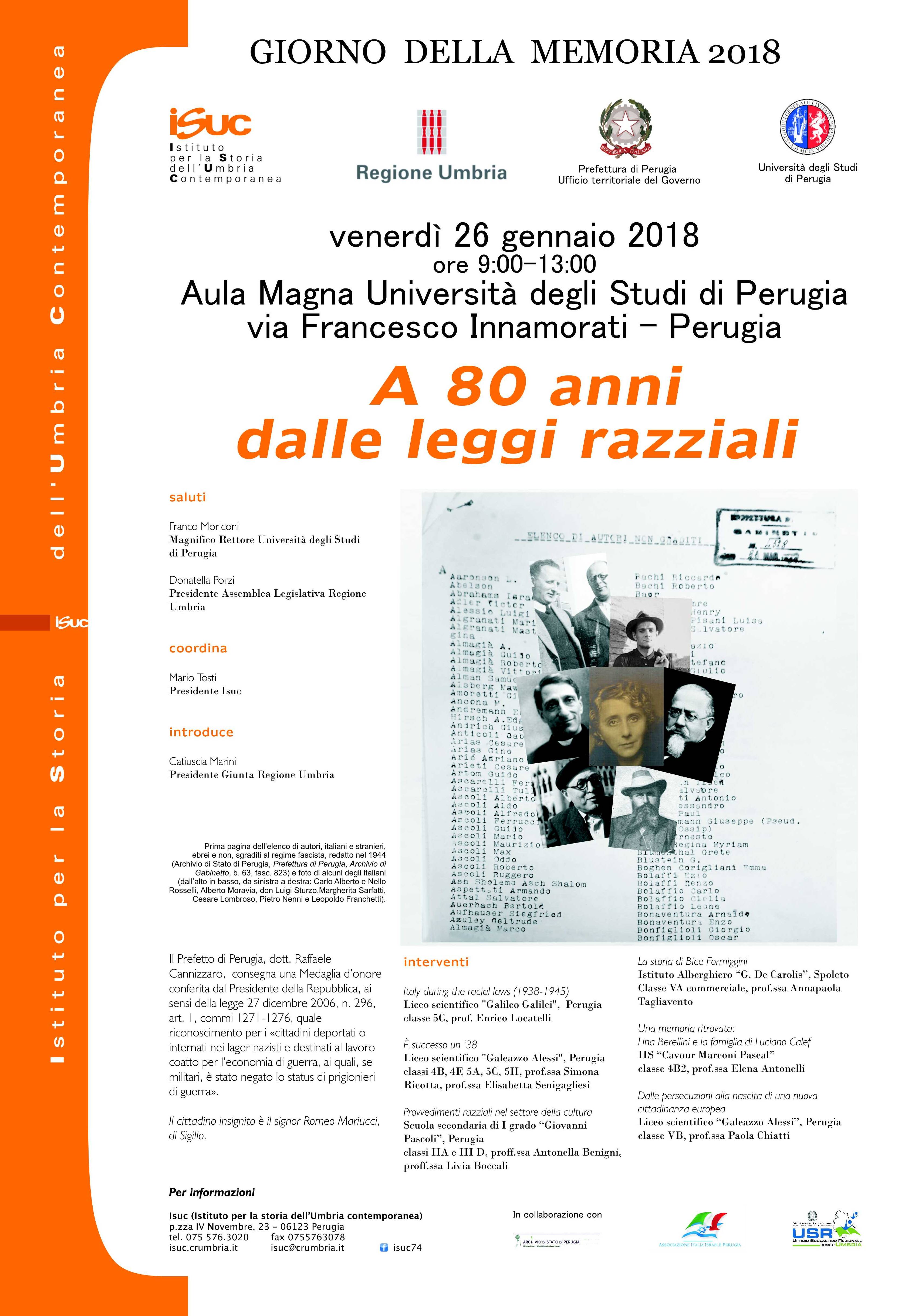 Giorno della memoria: venerdì 26 gennaio 2018 – ore 9:00-13:00 – presso Aula Magna Università degli Studi di Perugia via Francesco Innamoratisaluti