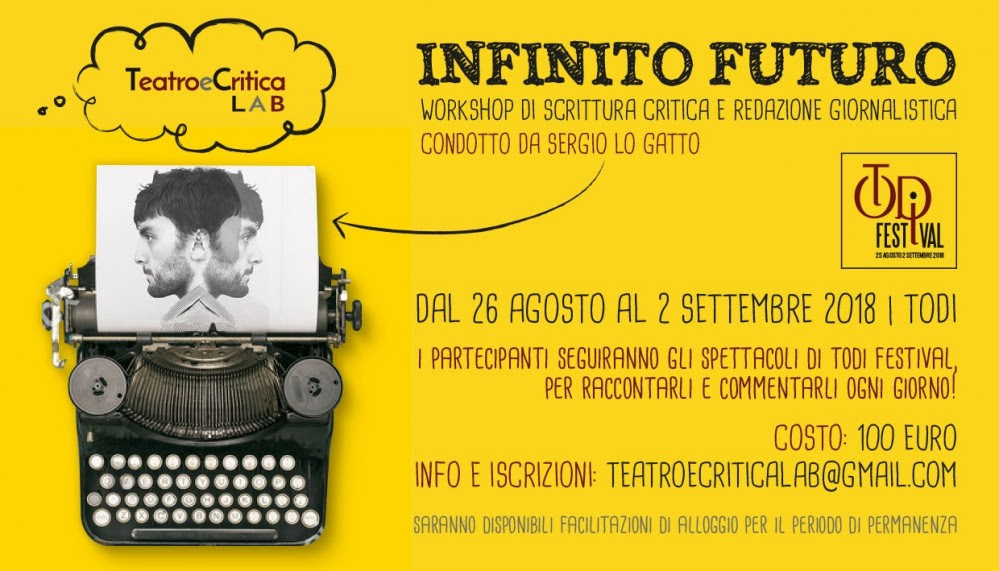 Dal 26 agosto al 2 settembre 2018 Todi diventerà sede di un laboratorio di scrittura critica e giornalismo teatrale. Una vera e propria redazione giornalistica guidata da Sergio Lo Gatto (direttore di Teatro e Critica)