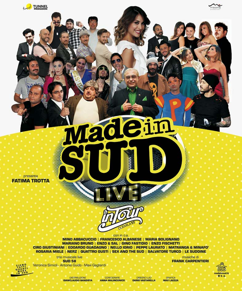 Diventato negli ultimi anni un fenomeno di costume che è riuscito a coniugare la contagiosa comicità partenopea con gli standard di più longevi show comici televisivi, Made in Sud è divenuto presto un appuntamento della prima serata di Rai 2 atteso da tanti fan e appassionati. Nato al Teatro Tam, come un “laboratorio artistico” aperto al pubblico, ha creato una nuova generazione di comici e uno stile originale, ormai riconoscibile in tutta Italia. Il segreto sta nel ritmo serrato delle esibizioni e il ricco cast di comici; la conferma di tanto successo si evince dal grande riscontro di pubblico, non solo in tv ma anche sul web, tra i giovanissimi e sui social network. Molti i nuovi personaggi dell’edizione teatrale con la musica del Dj Frank Carpentieri che scandisce inesorabilmente i serratissimi ritmi dello spettacolo e quella dei Sud58, pronti a proporre nuovi remix del canzoniere partenopeo. Anche nella versione teatrale lo show, adatto a grandi e piccini, è accompagnato nelle due ore di comicità e intrattenimento dalle coreografie del corpo di ballo delle “suddine”.