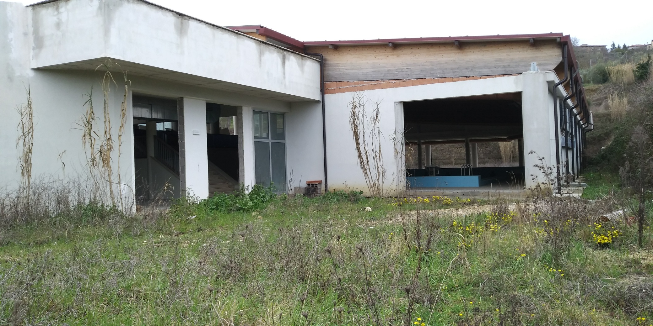 E ha potuto constatare che ancora mancano porte e finestre esterne sul lato posteriore dell’edificio e tutto lo stabile mostra già segni di rapido degrado.