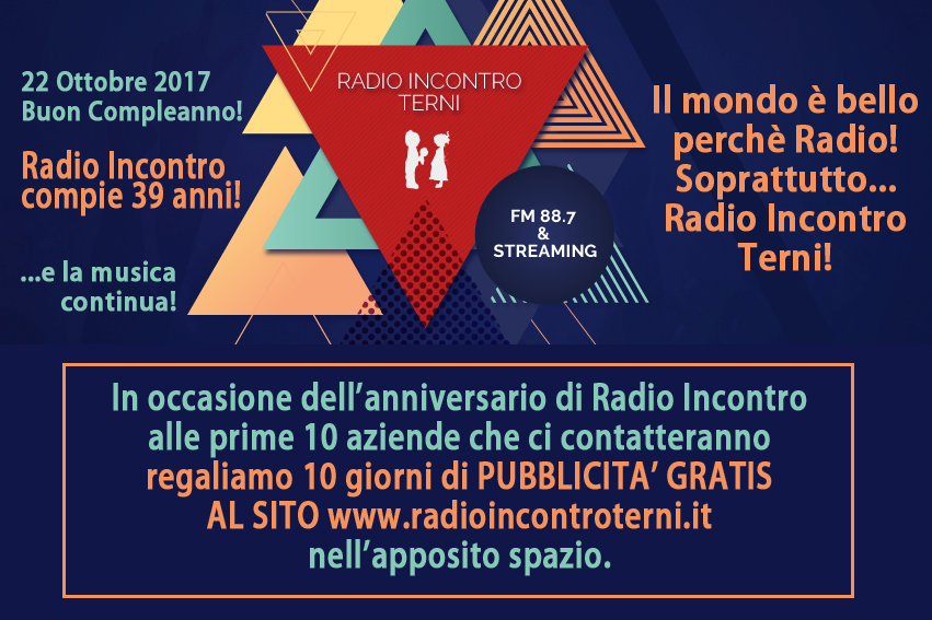 Il 22 Ottobre Radio Incontro festeggia il suo 39° compleanno, per questa occasione ha deciso di regalare un pacchetto pubblicitario